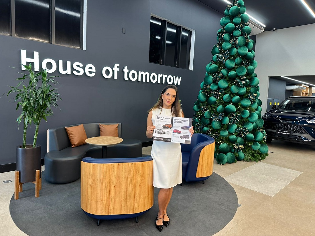 A empresária Poliana Miranda sócia proprietária da GWM MEGA MOTORS em Cacoal e Porto Velho/RO, da marca GWM linha eletrificada mais completa e sustentável do mercado, recebeu a REVISTA MARISA LINHARES, edição especial na qual sua empresa é anunciante