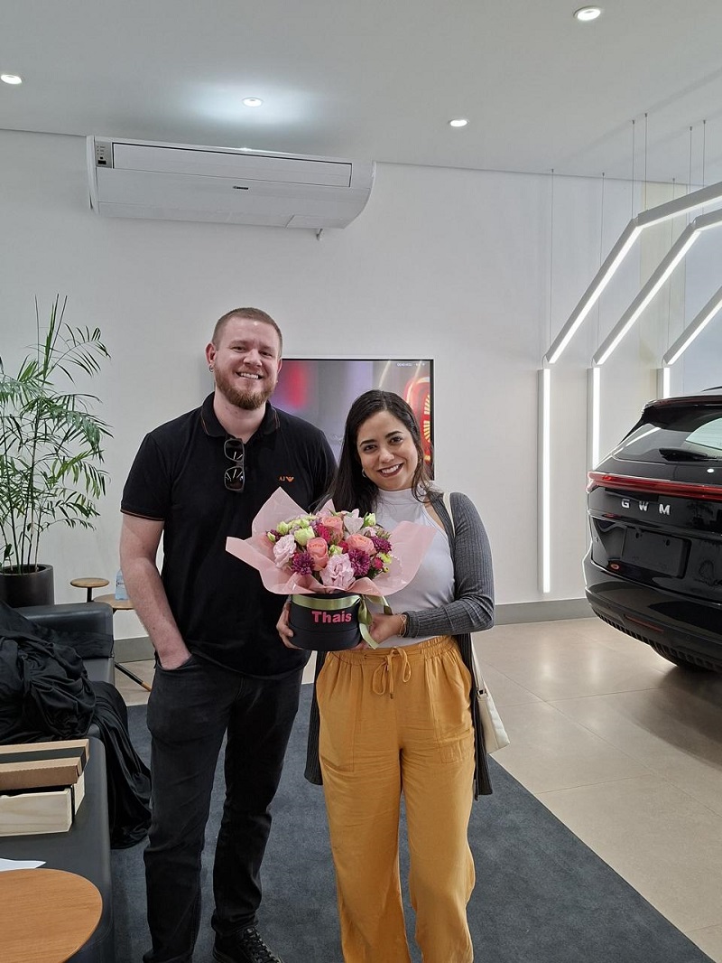 Em Cacoal/RO, na concessionária GWM MEGA MOTORS da GWM linha eletrificada mais completa e sustentável do mercado, LUCAS DONATO SOARES INDRUSIAK com THAIS, retirou seu maravilhoso GWM HAVAL H6 HEV ONE. O consultor de vendas DEYWYSSON VALENTIN foi o responsável pela venda