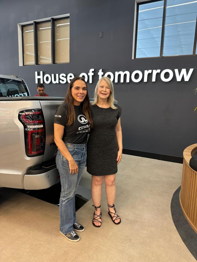LANÇAMENTO POER P30 e HAVAL H9 – GWM CACOAL Em Cacoal/RO, no último sábado, dia 13, com coquetel, churrasco e música ao vivo a concessionária GWM Mega Motors CACOAL foi palco do aguardado Lançamento da nova picape 4X4 GWM POER P30 e do novo GWM HAVAL H9 com motor 2.4 turbo diesel, tração 4X4 e 7 assentos, e o prestigiado público fez Test Drive na pista off-road exclusiva da GWM. Na foto a empresária Poliana Miranda recepciona a médica e vereadora Amália Milani
