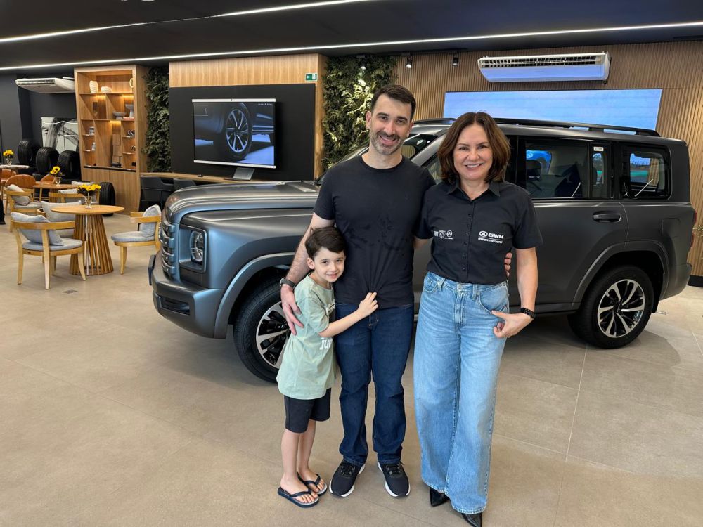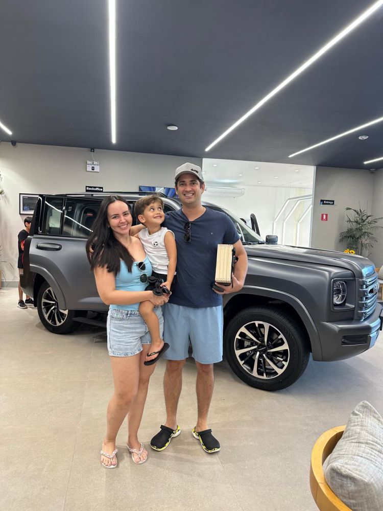 LANÇAMENTO POER P30 e HAVAL H9 – GWM CACOAL Em Cacoal/RO, no último sábado, dia 13, com coquetel, churrasco e música ao vivo a concessionária GWM Mega Motors CACOAL foi palco do aguardado Lançamento da nova picape 4X4 GWM POER P30 e do novo GWM HAVAL H9 com motor 2.4 turbo diesel, tração 4X4 e 7 assentos, e o prestigiado público fez Test Drive na pista off-road exclusiva da GWM. Na foto o médico cirurgião-vascular Douglas Amorim com a esposa Bruna Amorim e o filhinho Douglas