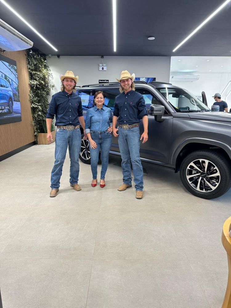 LANÇAMENTO POER P30 e HAVAL H9 – GWM CACOAL Em Cacoal/RO, no último sábado, dia 13, com coquetel, churrasco e música ao vivo a concessionária GWM Mega Motors CACOAL foi palco do aguardado Lançamento da nova picape 4X4 GWM POER P30 e do novo GWM HAVAL H9 com motor 2.4 turbo diesel, tração 4X4 e 7 assentos, e o prestigiado público fez Test Drive na pista off-road exclusiva da GWM. Na foto estou com os gêmeos Pedro e Paulo Muller do estado do Paraná, conhecidos na internet como @usgemeosdapecuaria