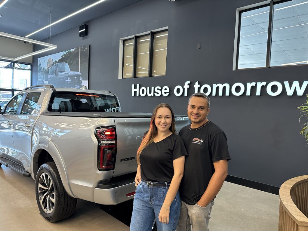LANÇAMENTO POER P30 e HAVAL H9 – GWM CACOAL Em Cacoal/RO, no último sábado, dia 13, com coquetel, churrasco e música ao vivo a concessionária GWM Mega Motors CACOAL foi palco do aguardado Lançamento da nova picape 4X4 GWM POER P30 e do novo GWM HAVAL H9 com motor 2.4 turbo diesel, tração 4X4 e 7 assentos, e o prestigiado público fez Test Drive na pista off-road exclusiva da GWM. Na foto o casal Talita Maiara e Luiz Henrique Mozart Silva Ribeiro da empresa AGITORO Som & Iluminação