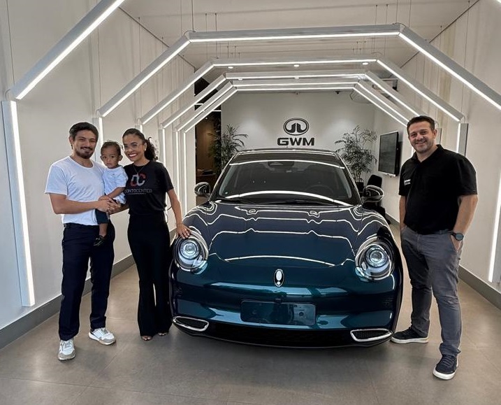 Em Cacoal/RO, na concessionária GWM MEGA MOTORS da GWM linha eletrificada mais completa e sustentável do mercado, a enfermeira Poliana Ribeiro Sato com o esposo cirurgião-dentista Tiago Sato da Odontocenter Cacoal, e o filhinho, retirou seu maravilhoso GWM ORA 03 SKIN. O Embaixador de vendas André Dotto Pacheco foi o responsável pela venda