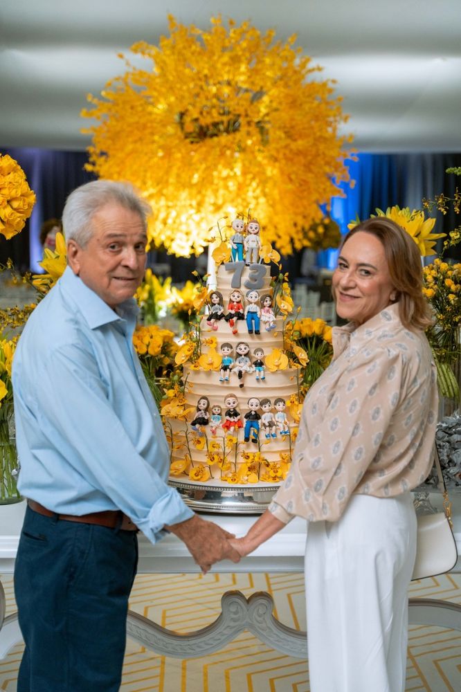 73 ANOS DE GILBERTO MIRANDA Em Ariquemes na última sexta-feira, 21, o empresário GILBERTO MIRANDA festejou seus 73 ANOS ao lado da esposa Shirley Miranda, dos filhos João Gilberto Miranda, Letícia Miranda Beltrame e Poliana Miranda, dos netos, amigos e inúmeros colaboradores do GRUPO GILBERTO MIRANDA em Rondônia. Durante a cerimônia religiosa da missa para Gilberto Miranda, a filha Poliana ocupou o púlpito. O casal posou com o belo bolo, com vários bonequinhos representando Gilberto e Shirley com os filhos e netos.
