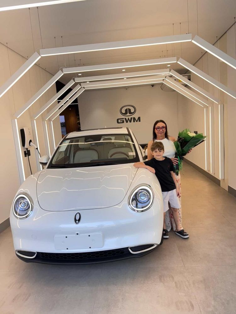 BETH VIEIRA - GWM ORA 03 SKIN Em Cacoal/RO, na concessionária GWM MEGA MOTORS da GWM linha eletrificada mais completa e sustentável do mercado, ELIZABETE VIEIRA acompanhada do neto Enrico Munin retirou seu maravilhoso e estiloso ORA 03 SKIN. Um lindo presente da amorosa filha Lygia Munin. O consultor de vendas André Dotto Pacheco da GWM Mega Motors foi o responsável pela venda