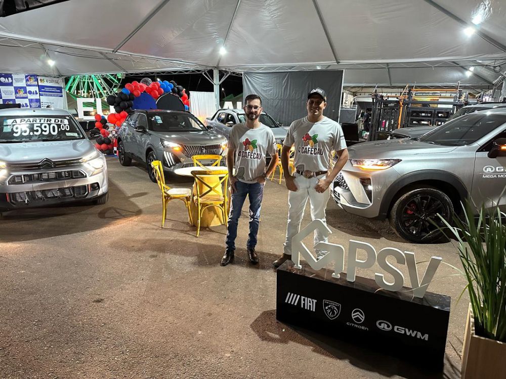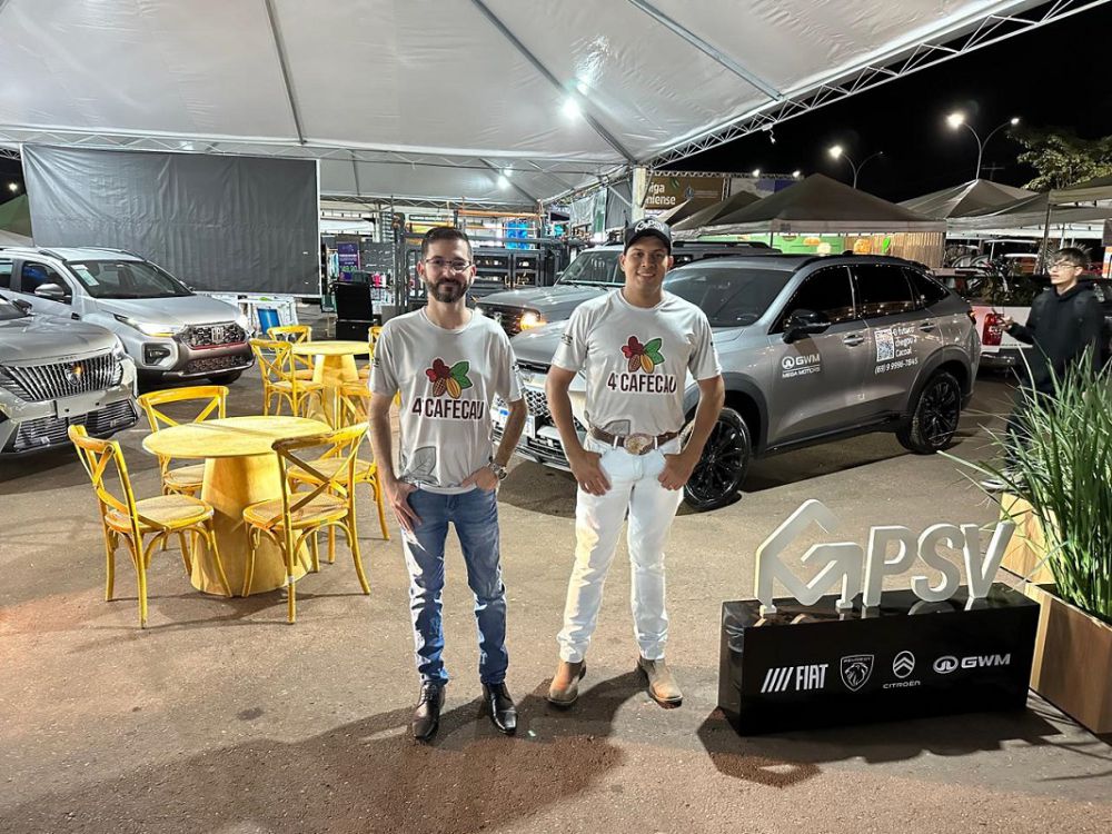 GWM / PSV FIAT, CITRÖEN e PEUGEOT No Espaço Beira Rio em Cacoal/RO, durante a CAFECAU – Feira do Café e do Cacau registrei os consultores de vendas Rafael Goes e Deywysson Valentin no stand das concessionárias GWM Mega Motors, PSV Fiat, Citröen, Peugeot do renomado GRUPO GILBERTO MIRANDA em Rondônia