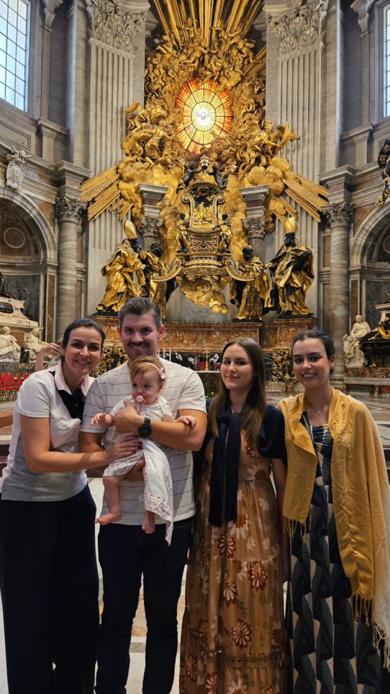 FAMÍLIA NA EUROPA Acompanhada pelo esposo psicólogo e neuropsicólogo Vinícius Santana, a advogada Katia Carlos Ribeiro afivelou malas e curte as férias de julho na Itália, com momentos inesquecíveis que inclui no extenso roteiro turístico, visita a Ilha de Capri localizada no Golfo de Nápoles famosa pela paisagem acidentada, pelos hotéis e pelos centros de compras sofisticados. Na foto durante visita à Basílica de São Pedro no Vaticano, o casal tem a companhia das jovens Letícia Ribeiro Alves e Laís Ribeiro Batistela filhas de Katia, e ainda de Lívia de oito meses, filha do apaixonado casal