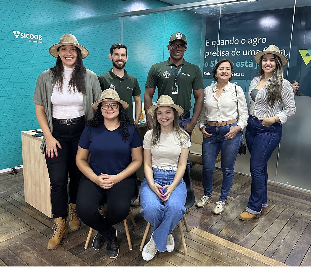 STAND SICOOB FRONTEIRAS No último sábado, 31, em Ji-Paraná/RO, na Rondônia Rural Show estive no prestigiado stand da renomada cooperativa financeira SICOOB FRONTEIRAS e fiz foto com parte da atenciosa equipe de colaboradores. Na foto estou sem chapéu entre Smaira Montes, Alexandre Coelho, Marcos Oliveira, Claudinéia Dantas, Janina Moraes e Josiane Neitzel