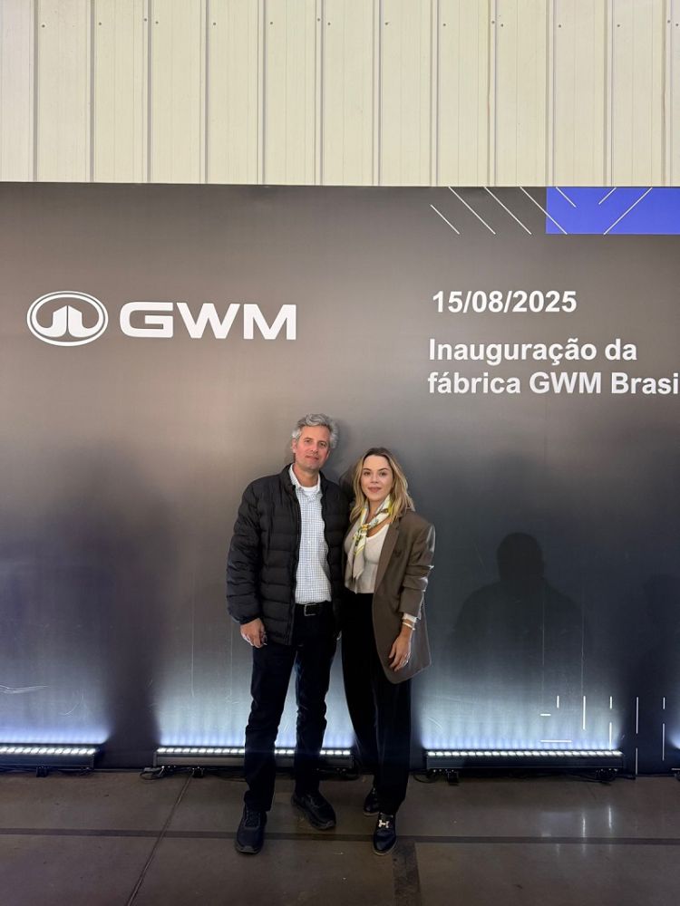 INAUGURAÇÃO DA FÁBRICA GWM – Iracemápolis/SP No último dia 15, a empresária Letícia Miranda Beltrame sócia proprietária com a irmã Poliana Miranda da GWM MEGA MOTORS em Porto Velho e Cacoal/RO, prestigiou a inauguração oficial da fábrica da GWM em Iracemápolis/SP. A unidade da GWM irá produzir veículos com tecnologia de ponta e qualidade reconhecida mundialmente, agora em solo nacional. Letícia esteve acompanhada do esposo empresário Gustavo Beltrame do Floresta Restaurante e Quintal Gastronômico