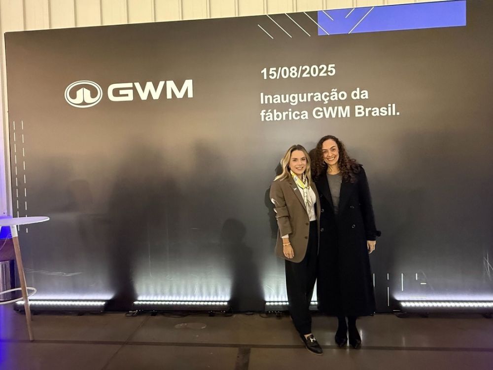 INAUGURAÇÃO DA FÁBRICA GWM – Iracemápolis/SP No último dia 15, a empresária Letícia Miranda Beltrame sócia proprietária com a irmã Poliana Miranda da GWM MEGA MOTORS em Porto Velho e Cacoal/RO, prestigiou a inauguração oficial da fábrica da GWM em Iracemápolis/SP. A unidade da GWM irá produzir veículos com tecnologia de ponta e qualidade reconhecida mundialmente, agora em solo nacional. Na foto Letícia e a gerente administrativa Melilla Braga da GWM MEGA MOTORS em Porto Velho