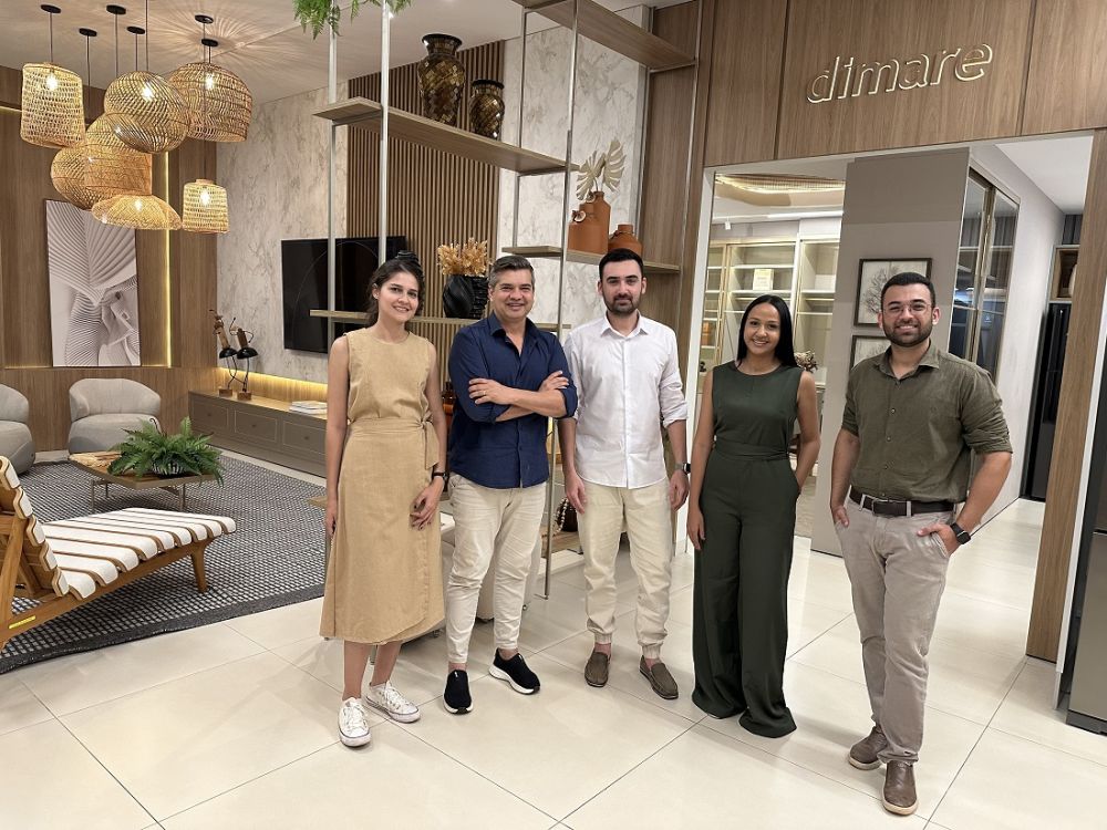 HAPPY HOUR NA DIMARE Na DIMARE CACOAL durante descontraído happy hour na última sexta-feira, registrei parte da dinâmica e atenciosa equipe de colaboradores da prestigiada loja de móveis planejados da famosa marca DIMARE, que recepcionou alguns parceiros. Na foto arquiteta Alana Freitas e vendedor externo Roberlei Vieira recepcionaram os parceiros engenheiros civil Felipe Maia e Thainara Letícia, e o arquiteto Leo Maia