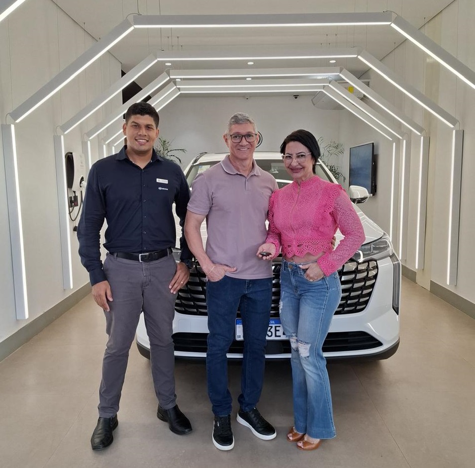 Em Cacoal/RO, na concessionária GWM MEGA MOTORS da GWM linha eletrificada mais completa e sustentável do mercado, a empresária Marli Mamoni com o esposo Cesar Matos retirou seu maravilhoso GWM HAVAL HEV2. O Embaixador de vendas Deywysson Valentin foi o responsável pela venda