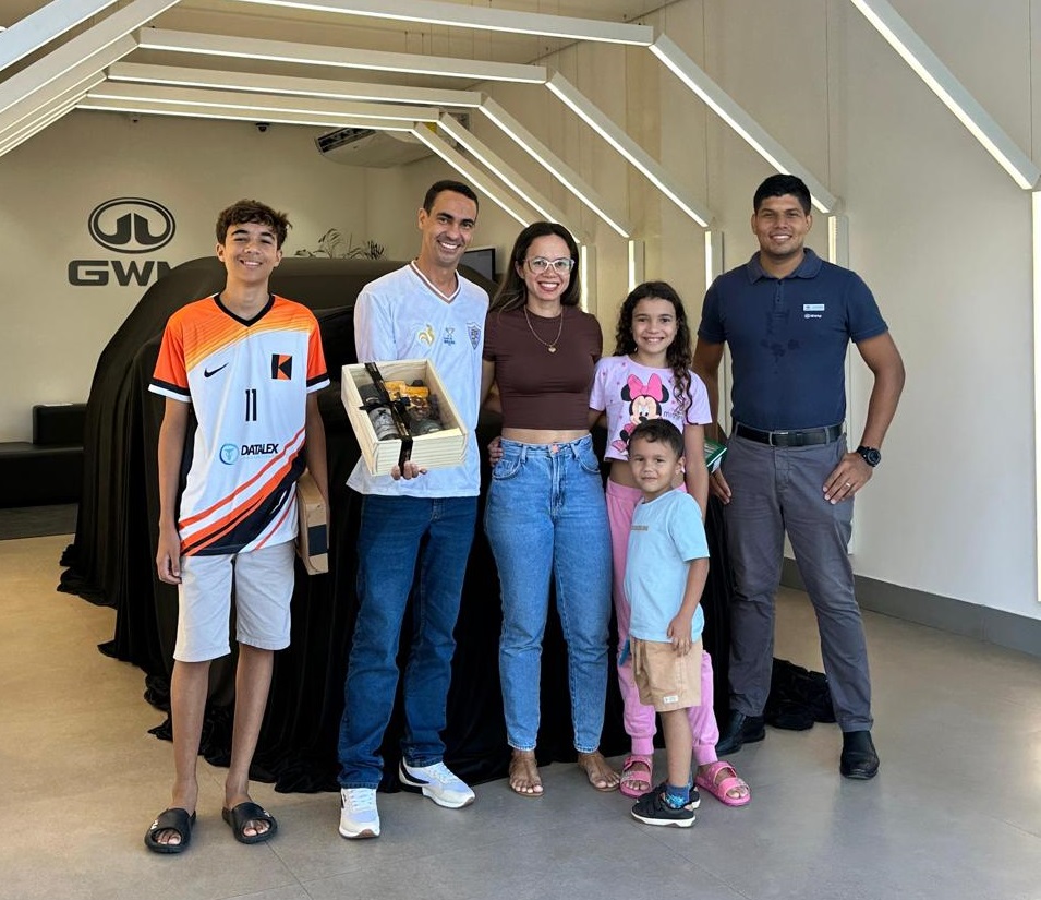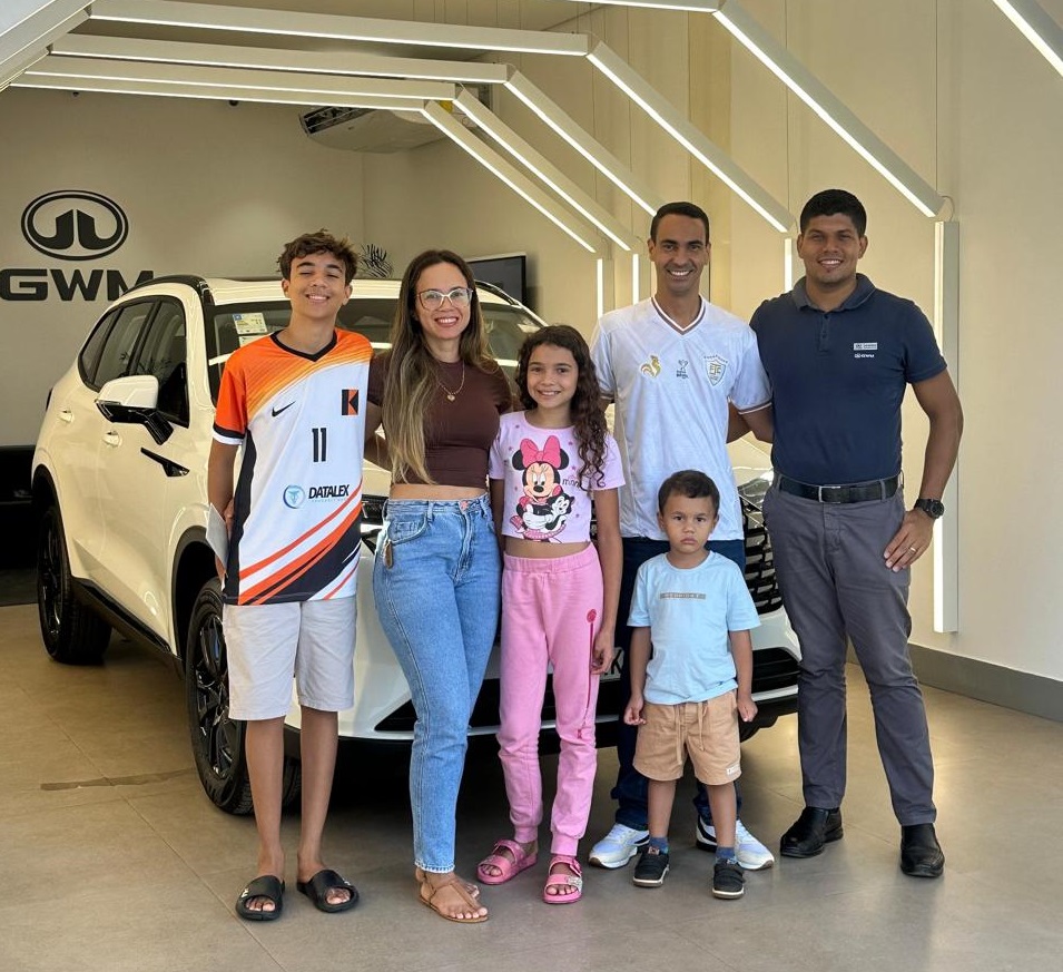Em Cacoal/RO, na concessionária GWM MEGA MOTORS da GWM linha eletrificada mais completa e sustentável do mercado, Juezio Iglesias Ribeiro da Silva de Jaru/RO, com a esposa Fabiana e os filhos, retirou seu maravilhoso GWM HAVAL HEV2. O Embaixador de vendas Deywysson Valentin foi o responsável pela venda