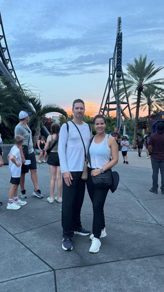 TRACK & FIELD - Troféu CACAU DE OURO 2025 Inaugurada em novembro de 2023, pelo casal empreendedor Janaína Almeida e José Goularte, a franquia TRACK E FIELD CACOAL do ramo de moda fitness, academia e corrida atende o público feminino, masculino e infantil. A marca TRACK & FIELD tem o propósito de levar aos clientes e pessoas que buscam o MOVIMENTO DO CORPO, bem estar, saúde e melhoria de qualidade de vida, que possam utilizar as peças com tecnologia Thermo Dry, qualidade e leveza. Os produtos TRACK E FIELD chama a atenção pela tecnologia exclusiva, qualidade, sofisticação e beleza em suas peças. Na foto Janaína e José Goularte em recente temporada na Disney em Orlando/EUA, se organizam para receber o tradicional Troféu CACAU DE OURO 2025 pela TRACK & FIEL CACOAL