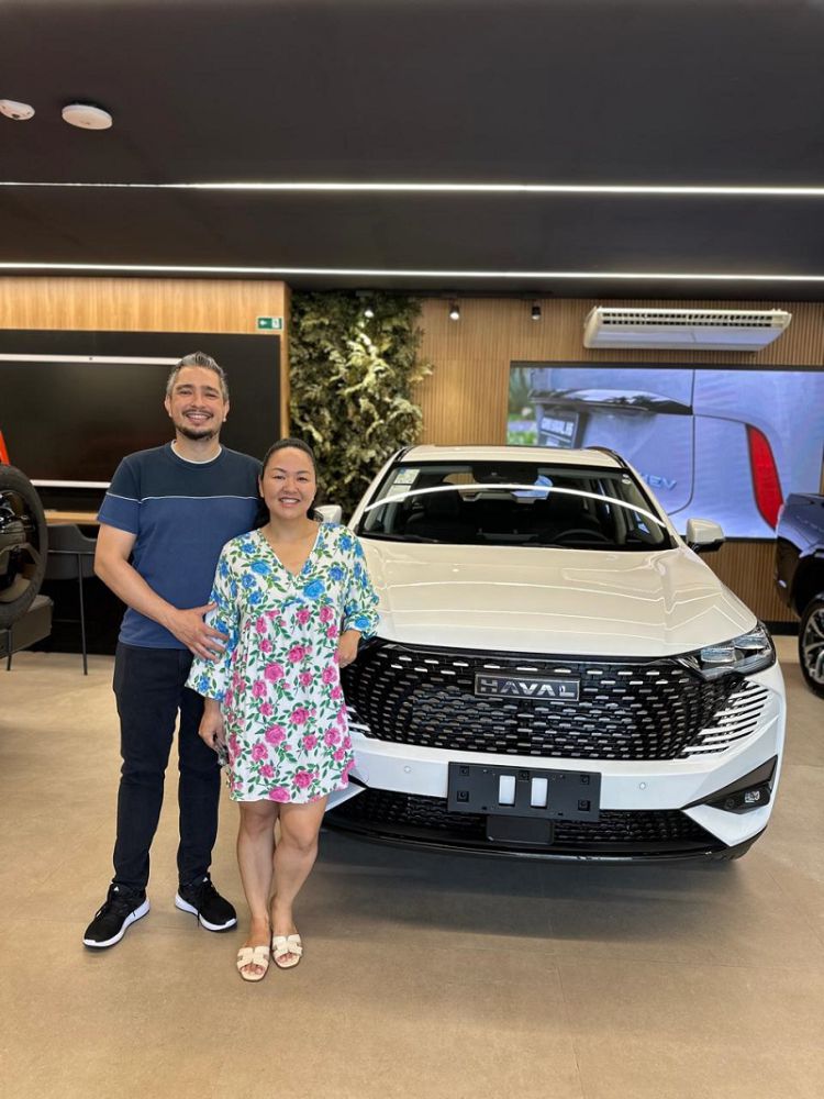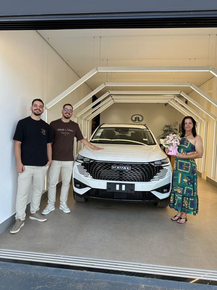 ALISSON, ALAN e CLEINE – GWM HAVAL H6 PHEV 19 Em Cacoal/RO, no último sábado, dia onze, na concessionária GWM MEGA MOTORS da GWM linha eletrificada mais completa e sustentável do mercado, os irmãos Alisson e Alan Spiguel, e a mãe Cleine Gonçalves de Oliveira de Vilhena/RO, retiraram seu maravilhoso GWM HAVAL H6 PHEV 19. A consultora de vendas Kauane Isbrecht da GWM Mega Motors foi a responsável pela venda